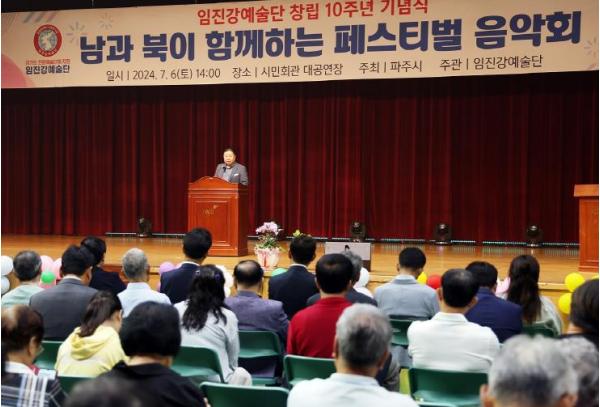김경일 파주시장은 “임진강예술단은 10년 동안 문화와 노래로 남과 북의 마음을 잇기 위해 부단히 노력해 왔다”라며 “이번 공연이 분단의 제일선이자, 통일의 길목에 있는 파주에 겨레와 평화의 소중함을 일깨우는 축제의 장이 되기를 기원한다”라고 말했다.