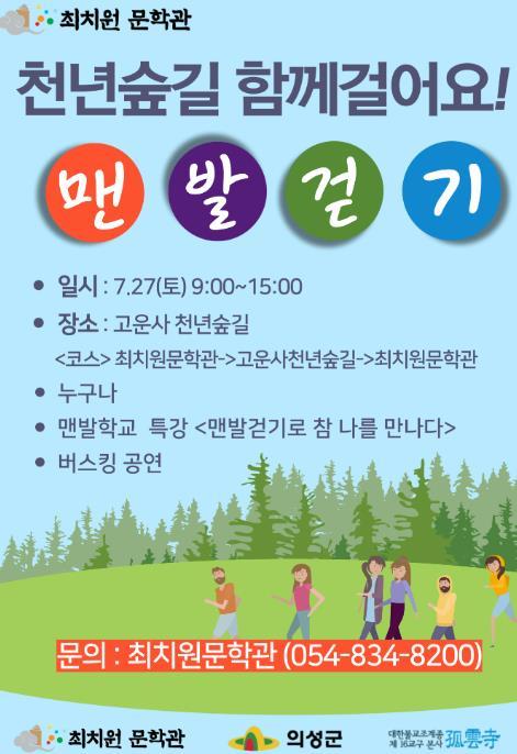 [singers news 씽어즈뉴스, 와보소기자] 의성군은 오는 7월 27일 최치원문학관 및 고운사 일원에서 천년숲길 맨발걷기 행사를 개최한다고 밝혔다.