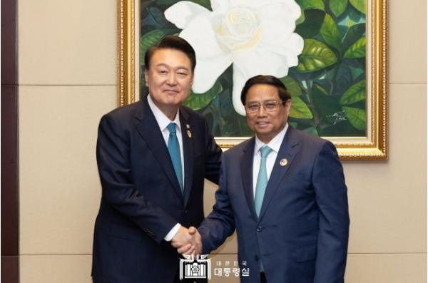 [singers news 씽어즈뉴스, 와보소기자] 아세안 관련 정상회의 참석을 위해 라오스 비엔티안을 방문 중인 윤석열 대통령은 오늘(현지 시간 10. 10, 목) '팜 밍 찡(Pham Minh Chinh)' 베트남 총리와 회담을 가졌다.