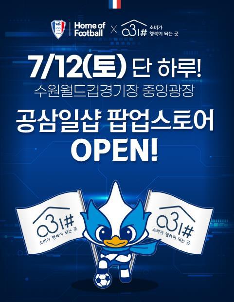 [singers news 씽어즈뉴스, 와보소기자] 경기도와 경기도주식회사가 운영하는 경기도 사회적경제 쇼핑몰 ‘공삼일샵(031#)’이 프로축구단 수원삼성블루윙즈와 협업해 12일 수원 홈 경기에서 공삼일샵(031#) 홍보부스를 운영하고 고객 대상 이벤트 등을 진행한다.