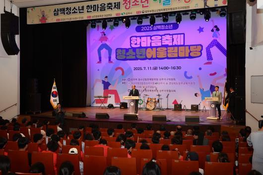 [singers news 씽어즈뉴스, 와보소기자] 상주시는 법무부 청소년범죄예방위원 상주지구위원회 주관으로 11일 오후 2시 상주문화회관 대공연장에서 청소년과 시민, 유관기관 단체장 등 400여 명이 참석한 가운데 “2025년 삼백청소년 한마음 축제”를 개최했다.
