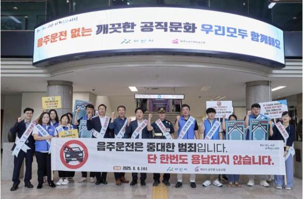 [singers news 씽어즈뉴스, 홍기한기자] 아산시가 아산시공무원노동조합과 함께 6일 아산시청 로비에서 음주운전 없는 안전한 공직사회 구현을 위한 ‘음주운전 근절 캠페인’을 추진했다.