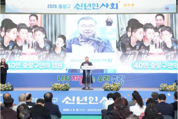 [singers news 씽어즈뉴스, 홍기한기자] 중랑구가 지난 9일 오후 중랑문화체육관에서 구민 1,200여 명이 참석한 가운데 2026년 신년인사회를 개최했다.