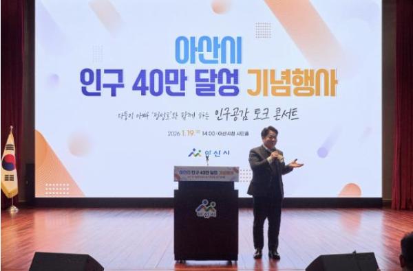 오세현 아산시장은 기념사를 통해 “인구 40만 달성은 단순한 숫자의 증가가 아니라, 아산시가 중견도시로서 규모와 기능을 갖추었음을 보여주는 분명한 전환점”이라며, “국가적으로 저출생과 지역소멸 위기 속에서도 성장하는 도시, 50만 자족도시를 준비하는 도시가 바로 아산”이라고 강조했다.