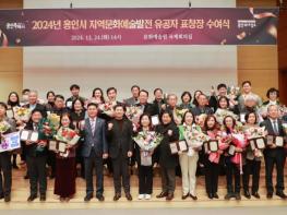 용인특례시는 24일 문화예술원 국제회의실에서 지역문화예술 발전에 기여한 유공자 39명에게 표창을 수여했다.이상일 시장은 이날 표창을 직접 전달하고 감사와 축하의 인사를 전했다.이 시장은 “올해 용인