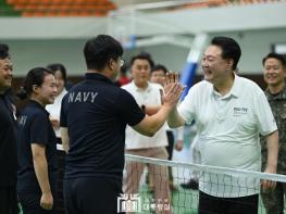 윤석열 대통령은 휴가 이틀(8.6~8.7) 동안 진해 해군기지에 머물며 장병들을 격려했다. 대통령은 7일 오후 해군 및 해병대 장병들과 농구, 족구 등 다양한 체육 활동을 하며 단합을 다졌다. 대통령이 진해기