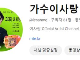 - 유튜브에서 가수님 이름우측에 영광스러운 ♪ 8분음표 콩나물대가리 즉 유튜브공식아티스트 우리말로 유튜브공식가수를 달아주었습니다. 같은이름을 사용하는 가수중 ♪ 8분음표 콩나물대가리달린 가수가 진짜 가수라는것과 진정한 가수로 공식적 (OFFICIAL) 인정하는 가수(ARTIST) 즉 귀하는 이제 "유튜브공식가수" 라는 뜻입니다. 이후 가수본인과 유튜브와 저희 MT에서 같이 가수채널을 꾸며가므로, 가수에 따라 천차만별로 가수명예와 유튜브구독자확보는 물론 수익창출에서도 큰 몫을할 수단으로 자리매김하게될 것입니다.