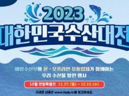 해양수산부는 11월 27일부터 12월 13일까지 17일 동안 ?대한민국 수산대전?연말 특별전?을 개최한다. 2020년부터 시작된 대한민국 수산대전은 소비자들이 마트와 온라인몰에서 최대 60%까지 할인된 가격에