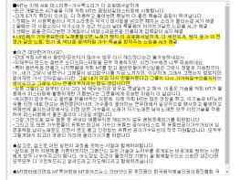 감사합니다 작은 희망을 보았습니다 응답을 하신다는 점, 감사합니다 최선을 다하고 계시다는 느낌이 들어 감사합니다 무엇보다 정정수 팀장님께서 마인드의 변화를 주시는거같아 감사합니다 이런 말을 하는 저희 mt가 좀시건방져 보일겁니다. 저희는 저희 mt관련 업무가 제대로 잘처리되기를 바라는 심정일뿐입니다 때로 화내고 따지고...죄송할따름입니다