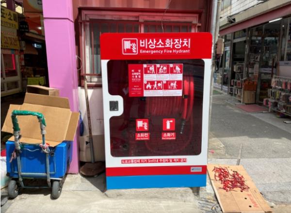 호스릴 비상소화장치가 설치된 곳은 ▲석성교 앞 ▲금복교 앞 다목적 광장 ▲중앙시장 성산분식 앞 ▲제2공영주차장 앞 ▲청한상가 앞 등 5곳이다. 시비 2300만원을 투입했다.