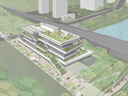 이번 당선작은 ‘자연, 사람, 안전’의 요소에 ‘STACK(무더기, 쌓다)’ 개념을 도입해 각각의 공간의 유기적 체계를 고려했다. 특히, 층간 효율적 연계와 반도체 기판의 이미지를 표현했으며 입체적 돌출을 디자인 요소로 사용함으로써 우수한 평가를 받았다.