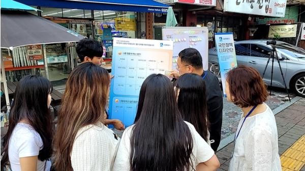 수원시 국민정책디자인단이 12일 인계동 수원시청년지원센터 인근 거리에서 청년들을 대상으로 가족돌봄 대상자의 어려움을 발굴하기 위한 설문조사를 했다.