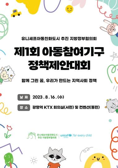 유니세프아동친화도시 추진 지방정부협의회가 오는 16일 광명KTX역사 내 대회의실에서 유니세프한국위원회와 함께 ‘아동참여기구 정책제안대회’를 개최한다.