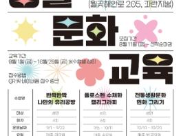 시는 지난 4월부터 상반기 생활문화프로그램과 ‘함께그린 GREEN전시회’를 운영했ㄹ으며, 오는 9월 1일부터 10월 20일까지 ‘월곶예술공판장 아트독’에서 하반기 생활문화프로그램을 운영한다. 월곶예술공판장 아트독은 (구)옹진수협 월곶수산물공판장을 개조해 지역거점 생활문화공간으로 운영 중인 문화재생공간이다.