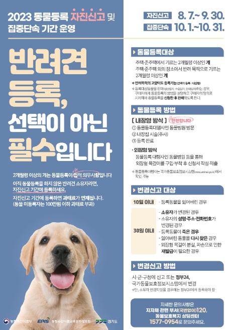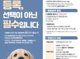 수원시가 동물의 보호와 유실?유기를 방지하고, 동물등록률을 높이기 위해 9월 30일까지 ‘동물등록 자진신고 기간’을 운영한다.