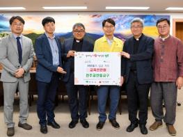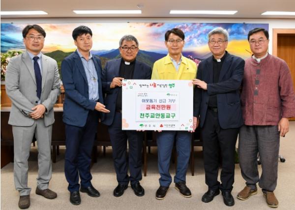 영주시는 천주교안동교구에서 11일 영주시청을 방문해 이웃돕기성금 6000만원을 기탁했다고 밝혔다.