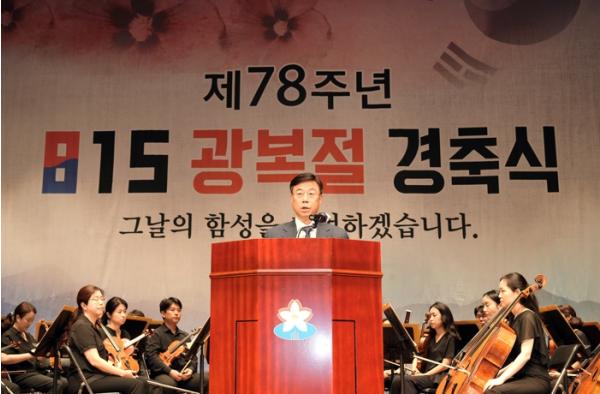 이날 행사는 독립유공자 유족과 광복회원, 국회의원, 도·시 의원, 시민 등 600여 명이 모인 가운데 기념사, 경축사, 광복절 노래 제창, 만세삼창 등의 순서로 진행됐다.