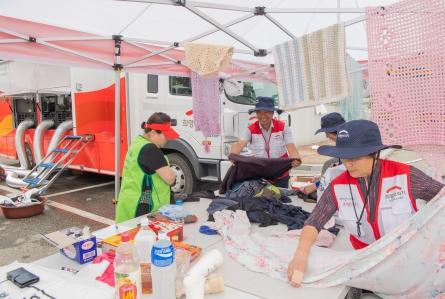 약1만평 규모의 파주 재해구호물류센터에서 긴급 출고한 이번 구호물품은 대피소 칸막이 112동, 생수 45,140병, 컵라면 7.728개, 수건 300매, LG헬로비전의 후원으로 제작된 이재민구호키트 84세트 등 총 53,364점이다.
