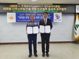 대전 대덕구 대화동과 국제로타리클럽3680지구 대전로타리클럽이 지역사회 상생발전을 위한 업무협약을 체결했다.