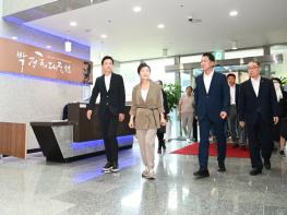 특히, 김장호 구미시장의 안내로 공간이 협소하여 모두 전시하지 못해 수장고에 보관돼 있는 유품을 둘러보며, "박정희 대통령의 지팡이와 육영수 여사가 사용하시던 2단 책상과 자개소품함 등을 보고 기억이 난다"며 부모님에 대한 애틋한 추억을 떠올렸다.