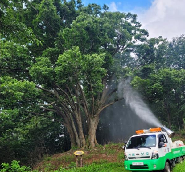 시는 방제 차량 3대를 투입해 오는 18일까지 2차 방제를 마치고 나면 7일 격차를 두고 3차 방제작업을 실시한다.