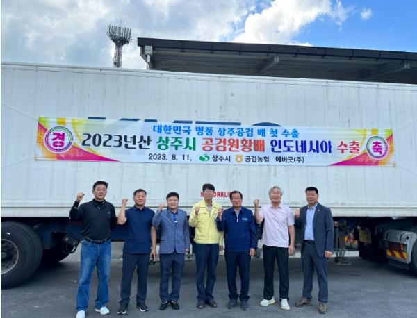 이번 수출 물량은 9.9톤(3,300만 원 상당)으로 공검면 65농가가 약 50ha에서 생산한 배(원황)이며 인도네시아로 수출할 계획이다.