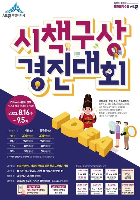 세종특별자치시가 창의적인 정책 아이디어를 모집하기 위해 시민과 시청 공무원을 대상으로 16일부터 오는 9월 5일까지 ‘2024년도 시책구상 경진대회’를 개최한다.