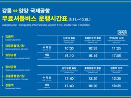 이에 따라, 양양공항 순환버스는 양양국제공항의 국내선 운항 스케줄을 반영하여 운행시간표를 편성했으며, 매일 1회씩 강릉역과 양양국제공항을 왕복하고 수·목·일에는 2회씩 왕복하여 주 10회 왕복 운행한다.