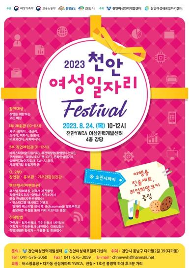 ‘천안여성 일자리 페스티벌(Festival)’이 오는 24일 오전 10시부터 12시까지 천안YWCA여성인력개발센터 4층 강당에서 개최된다.