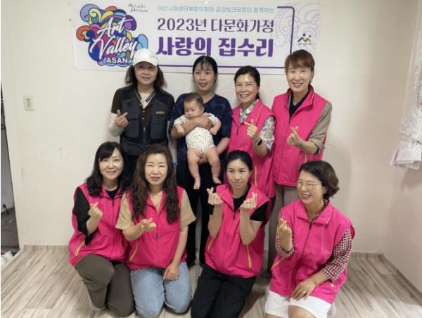 아산시여성단체협의회는 지난 16일 ’2023년 다문화 멘토링 사업‘의 일환으로 다문화 출산가정을 방문해 출산선물꾸러미를 전달하고 주거환경사업을 시행했다.
