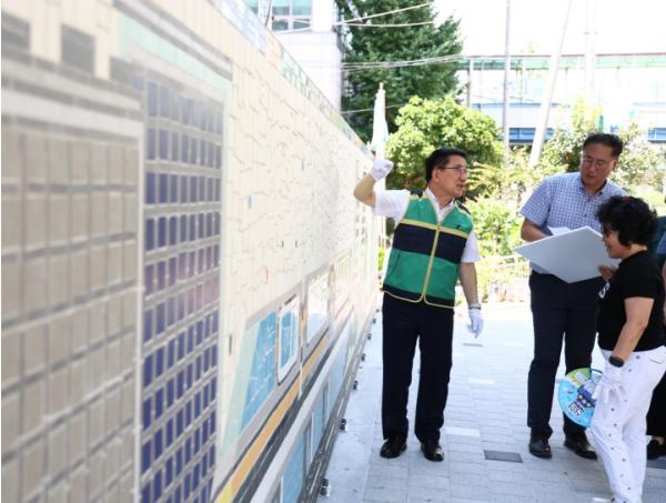 또 1번 출구 앞의 빗물펌프장 수문 치수시설물을 점검하고, 보행자의 불편을 초래하는 자전거 거치대와 방치된 자전거 상황을 확인했다.
