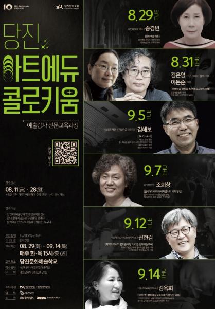 올해에는 시범교육과정을 통한 운영으로 ‘당진아트에듀콜로키움’ 문화예술강사 전문교육과정을 진행하며, 총 6강의 커리큘럼을 구성했다.
