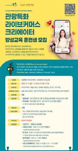 경기도와 여성가족부가 한국민속촌 관광 등 관광프로그램 제품을 판매하는 실시간 소통 판매 창작자(라이브커머스 크리에이터) 12명을 양성한다.