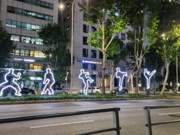 ‘테헤란로 일대 태권도 상징물 조성사업’도 최근 완공됐다. 이곳은 테헤란로 156길, 국기원 입구 사거리 일대 중앙녹지대다. 설치된 조형물은 태권도 동작을 담은 상징물 11개로 국기원과 협의, 설치 위치, 동작 등을 추천 받았다. 조형물은 2.9m~4.2m로 역동적인 품새 동작 등을 형상화 한 것이 특징이다. 또 국기원 사거리를 중심으로 역삼역 방향에 설치된 5개의 조형물은 태권도 기술인 ‘돌개차기’의 연속 동작으로 역동성이 눈에 그려진다. 국기원사거리와 강남역 방향으로 3개씩 설치된 6개는 ‘발차기’와 ‘막기’ 자세를 형상화 했다. 특히 저녁시간에는 조명까지 들어와 테헤란로의 명물이 될 것으로 전망된다. 예산은 총 4억 3,000여 만원.