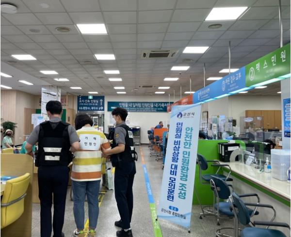 군산시는 지난 14일부터 17일까지 군산시청 및 27개 읍·면·동 민원실에서 개별 보안업체와 합동으로 폭행. 폭언 등의 특이민원 발생상황 대비 모의훈련을 실시했다고 밝혔다.