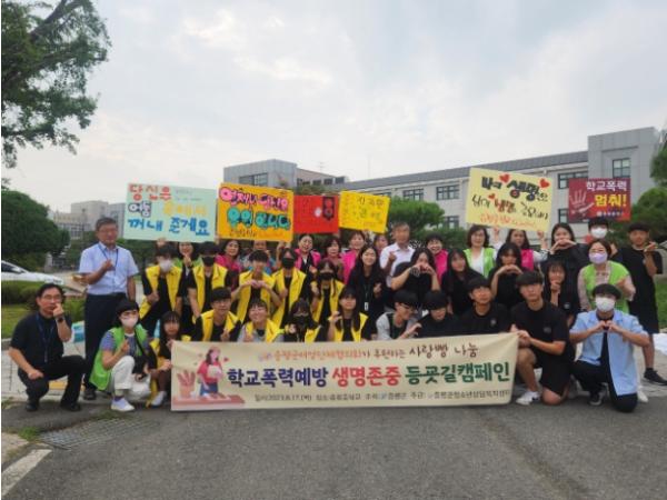 이번 캠페인은 군과 증평군청소년상담복지센터, 증평군여성단체협의회, 증평중학교 학생부 및 또래상담자 등이 참여해, 학교폭력을 예방하고 생명의 소중함에 대한 인식을 높여 건전한 학교생활을 도모하고자 마련했다.