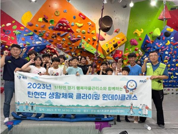 파주시 탄현면은 17일 운정 실내 인공 암벽장에서 ‘클라이밍 일일강좌’를 진행했다.