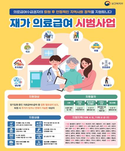 재가의료시범사업은 장기입원 필요성이 낮지만 입원중인 의료급여 수급자를 대상으로 주거지에서 의료, 돌봄, 식사, 병원 이용 등의 통합 재가서비스를 제공하는 사업이다.