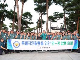 대전유성경찰은 지난 18일 저녁, 대전 유성구 유림공원에서 펼쳐지는 '2023 유성 재즈&맥주 페스타' 행사의 안전한 개최를 위하여 자율방범대 등 민간협력단체와 함께 공동체치안활동을 펼쳤다.
