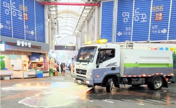 우선 구는 8월부터 11월까지 영등포전통시장과 대림중앙시장에 월 1회 정기적인 물청소를 실시한다. 오전 6시부터 7시까지 살수차(3톤) 1대를 투입해 전통시장 영업 전에 진행한다.