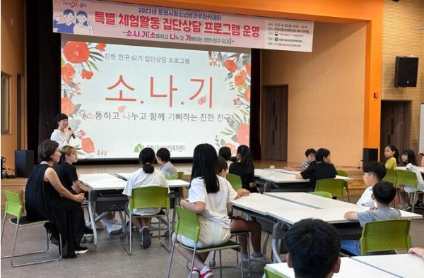 문경시는 8월 22일 문경시 청소년상담복지센터와 연계하여 소.나.기 [소통하고 나누고 기뻐하는 친한 친구 되기] 특별 체험활동 집단상담 프로그램을 운영했다.
