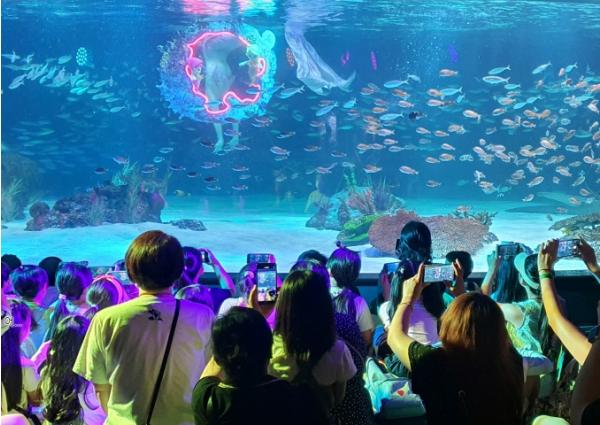 가족들은 우선 63스퀘어에 있는 아쿠아플라넷 63을 방문했다. 아이들은 푸른 물속을 헤엄치는 물고기들과 거북이를 보며 잠시 무더위를 잊었다. 물고기 사이사이를 헤엄치는 인어공주 쇼가 시작됐을 때는 여기저기에서 환호가 터졌다.