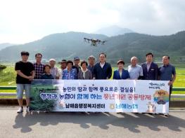 남해읍 행정복지센터와 남해농협은 긴 장마와 폭염에 대비하기 위한 항공 방제를 읍 전역에서 총 3차에 걸쳐 시행했다.