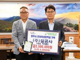 (재)영주시인재육성장학회는 22일 ㈜칠공사에서 지역인재 육성을 위한 소중한 마음을 담아 인재육성장학금 250만 원을 기탁했다고 밝혔다.