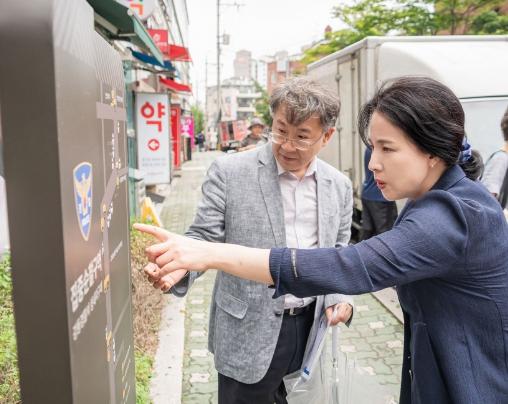 이수희 강동구청장은 지난 22일, 성내2동을 찾아 최근 조성을 완료한 ‘강동형 안심귀갓길’의 안전시설물들을 점검하며 주민 귀갓길 안전을 살폈다.