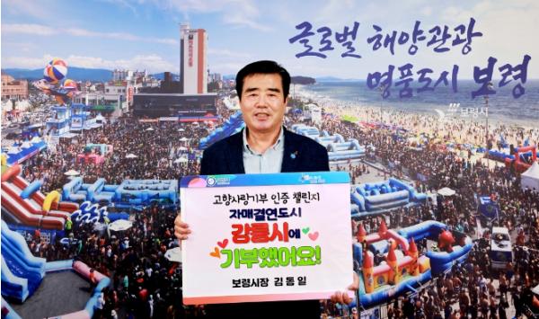 보령시는 김동일 시장이 고향사랑기부제의 성공적인 정착을 위한 ‘고향사랑기부 인증 챌린지’에 동참했다고 25일 밝혔다.