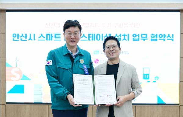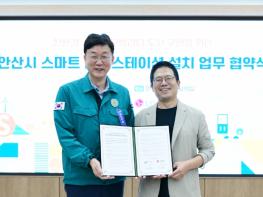 이날 안산시청 제1회의실에 열린 협약식에는 이민근 안산시장과 도원동 ㈜LG전자 커런트닷컴퍼니 대표 등이 참석했다. 협약에 따라 LG전자는 PM 스테이션 도입에 필요한 시스템을 구축하고 지역상권 활성화를 위한 제휴 등의 사무를 담당한다.