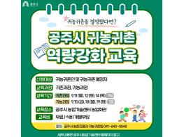 공주시는 오는 9월 6일까지 하반기 귀농귀촌인 역량 강화 교육 대상자 50명을 모집한다고 25일 밝혔다.