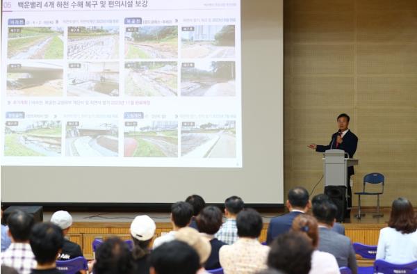 이날 간담회는 백운밸리 도시개발사업 추진현황을 설명하고, 사업과 관련한 지역 주민들의 궁금증을 해소하기 위해 마련했다.