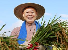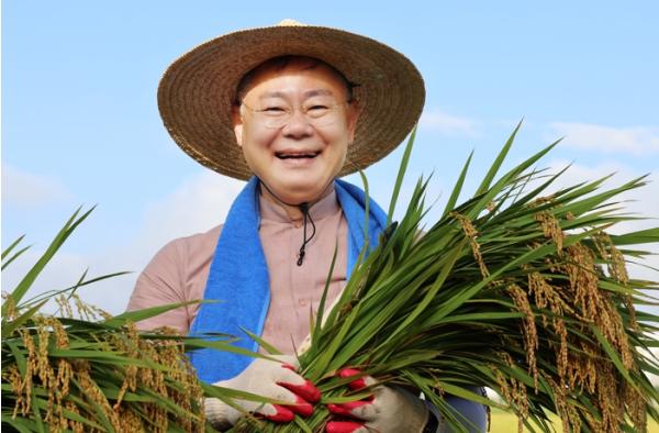 올해 첫 수확 벼 들고 활짝 웃는 김재욱 칠곡군수